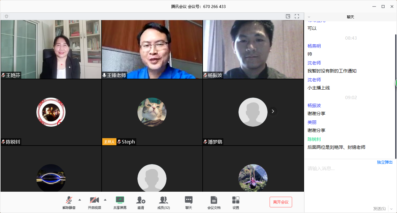 院长王艳芬根据第一周信息化教学情况进行发言。她指出,开展信息化教学是我们贯彻落实国家和我省关于新型冠状病毒肺炎疫情防控工作部署的要求,也是响应学校2020年春季学期教学工作部署的重要举措之一,同时还是学院信息化教学的一次大跨越。“为实现这一跨越,全院老师付出了艰辛的劳动,从课程设计、教学计划撰写、教案完善、视频录播、考核方式制定、学生学习方式培训、网站建设,再到教学平台直播,短短的两周时间我们开展了大量的工作。”王院长说,“开展信息化教学,我们要在思想上给予重视,要勇于尝试新的教学方法,向线上课堂要质量。”王院长还勉励大家多尝试新的方法,引用各方面优质教学资源,做好教学资料积累,为学院信息化教学常规化打下基础。