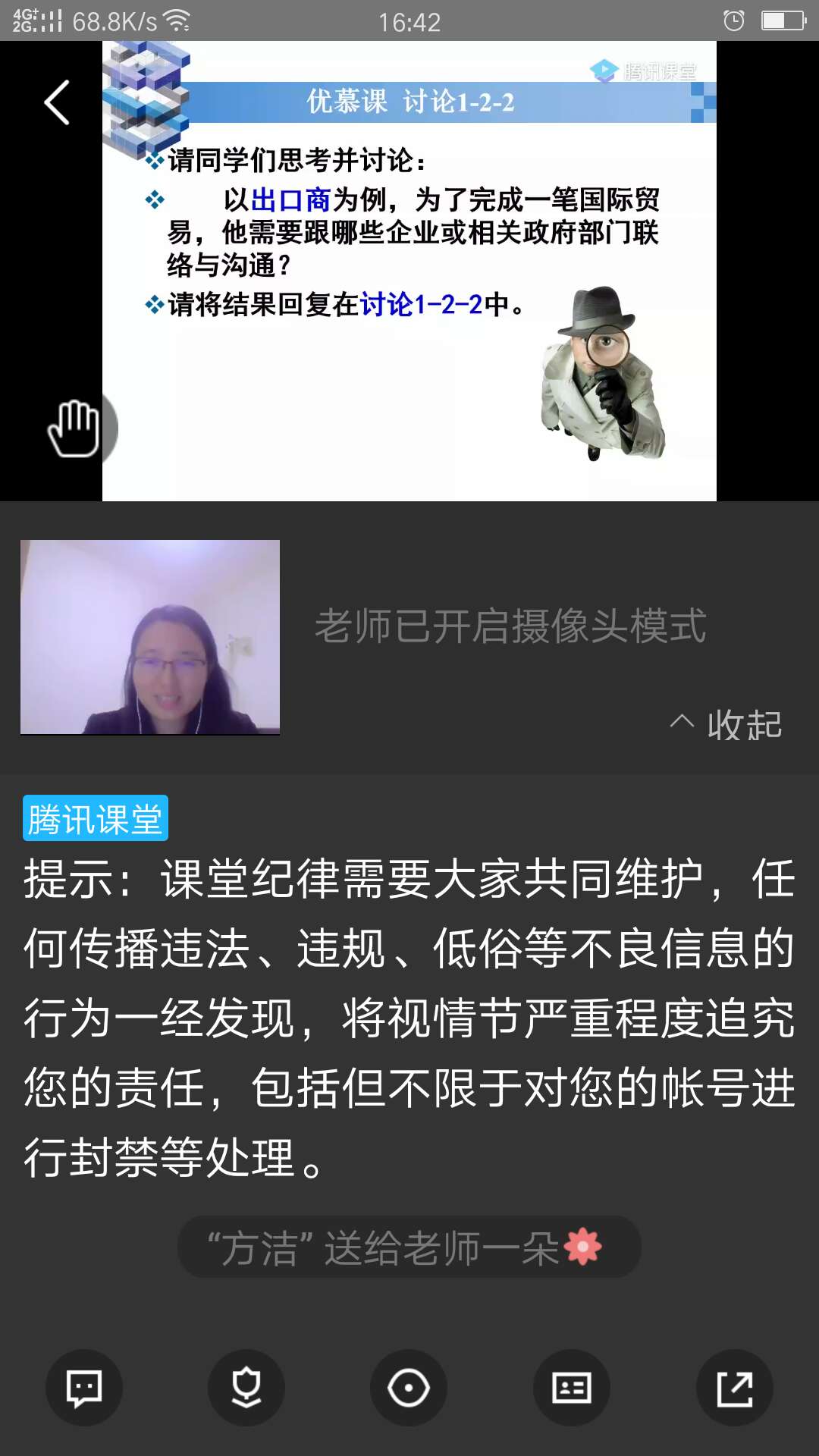 一周的线上教学,很多老师根据当前疫情、时事政治案例与教学相结合,赢得较好的学生互动效果,成为我们经贸线上网络课程最大的亮点。”在会上,副院长方洁总结一周教学情况下高兴地向大家反馈。