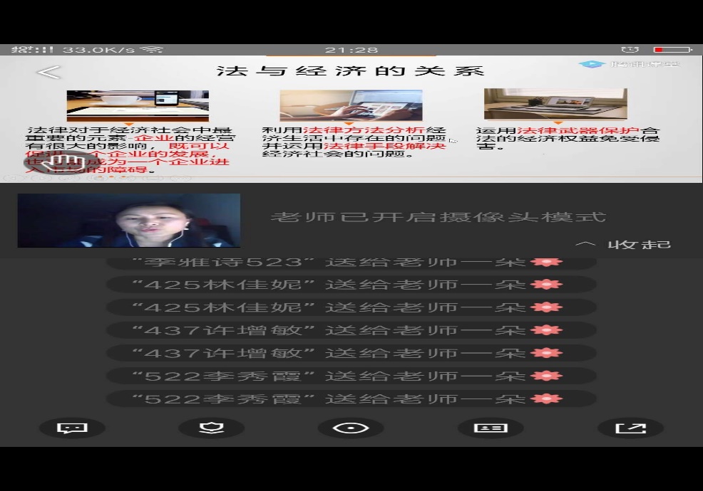 学生有没有到位上课,课堂有没有认真听讲是影响线上课堂教学质量的关键一环,由于学校优慕课平台签到功能有待完善,经贸学院的老师们想方设法,采用了课堂派、问卷星、雨课堂、直播签到等方式完成,确保同学们能在指定的课表时间参与课堂教学及互动。