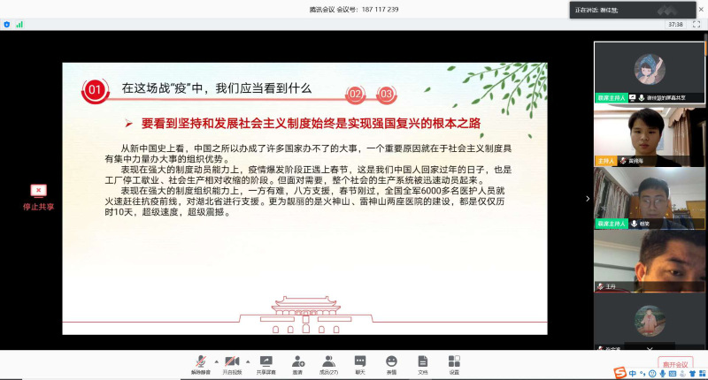 主题党日活动结束后,全体党员进行支部第四期时事微课堂的学习。谢佳慧同志进行了主题为《透过战“疫”的思考》的发言,引发了党员同志们的热烈讨论。