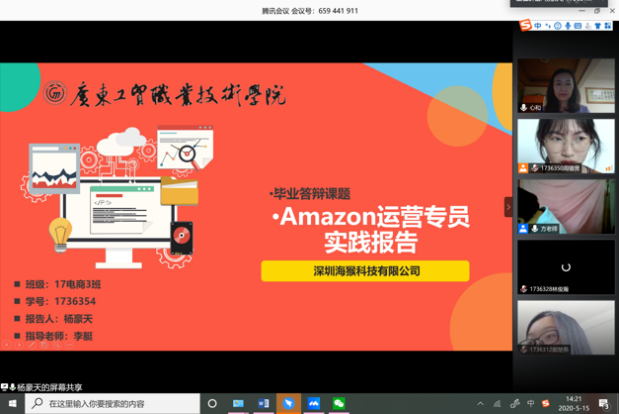 老师和学生在线上答辩的状态都很好,气氛热烈,整个过程组织井然有序,丝毫不亚于现场答辩。值得一提的是,在答辩期间,多个学生都趁着讲述阶段表达了自己的感恩之情,纷纷表示感谢学校及学院三年的养育之恩和指导老师在特殊时期给予的论文指导和就业指导的帮助。学生们十分感恩指导老师不辞辛苦的帮助和答辩老师中肯的意见,并且希望能尽早返校,面对面地向老师表达自己的感激之情。同时,也十分希望和广东工贸好好地道别,弥补最后一个学期没能在学校留下纪念的遗憾。