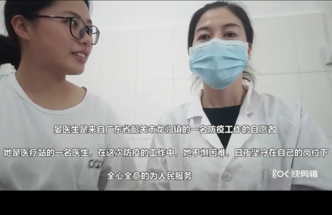 我此次采访的是一位医疗站的医生,该名医生在此次防疫中报名了志愿者。她不惧困难,日夜坚守自己的岗位,全心全意为人民服务的精神让我十分动容。