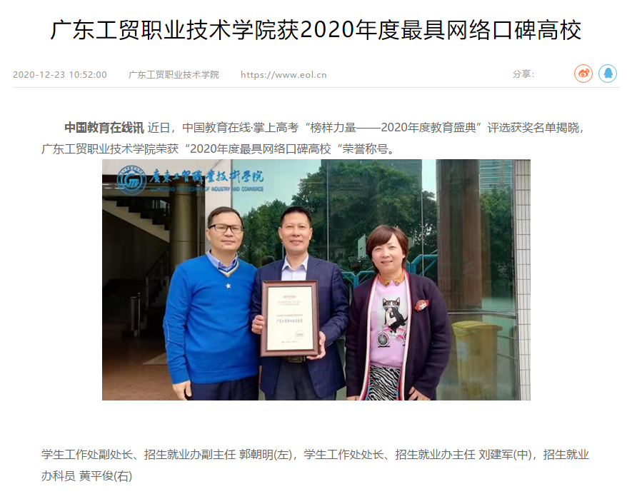 我校2020年招生工作在校党委正确和坚强的领导下,在广大师生鼎力支持和共同努力下,圆满完成12种类型10238名学生的招生录取任务!以各类型在校生22295人的成绩来庆贺学校办学六十三周年生日!现圆满收官,2明年继续奋进!学校不仅给南方+评为“2020年广东高考招生宣传工作锐意创新奖”,现又被中国教育在线授“2020年度最具网络口碑高校”,