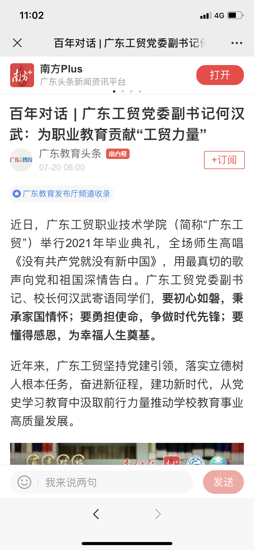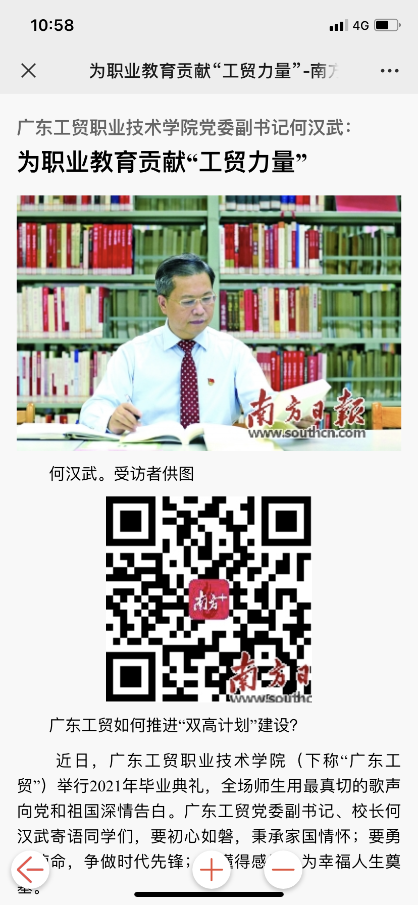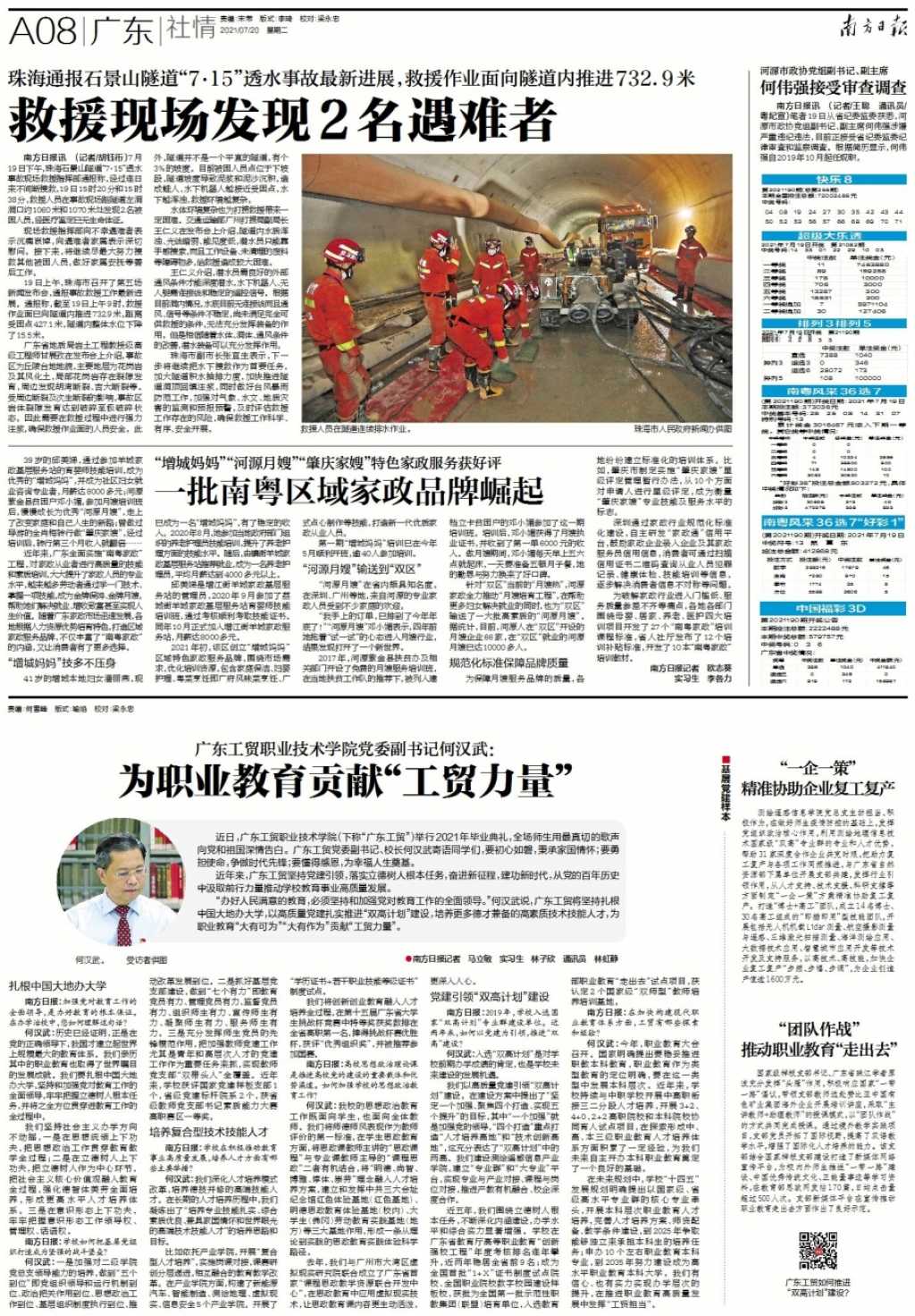 南方日报“百年对话”系列报道推出广东工贸篇,聚焦广东工贸如何以高质量党建扎实推进“双高计划”建设,为职业教育“大有可为”“大有作为”贡献“工贸力量”