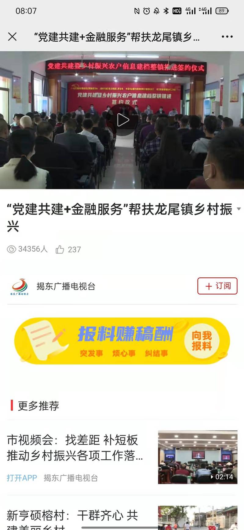 在广东省教育厅驻镇帮镇扶村工作队(以下简称工作队)积极协调促进下农业银行揭阳分行与揭东区龙尾镇开展党建共建暨乡村振兴农户信息建档整镇推进签约仪式。工作队与农行揭阳分行进行了党建共建签约仪式和互授牌匾、赠书。同时,在工作队与农行揭阳分行的见证下,农行揭东支行与揭东龙尾镇签订了《金融服务乡村振兴--农户信息建档整镇推进合作协议》。