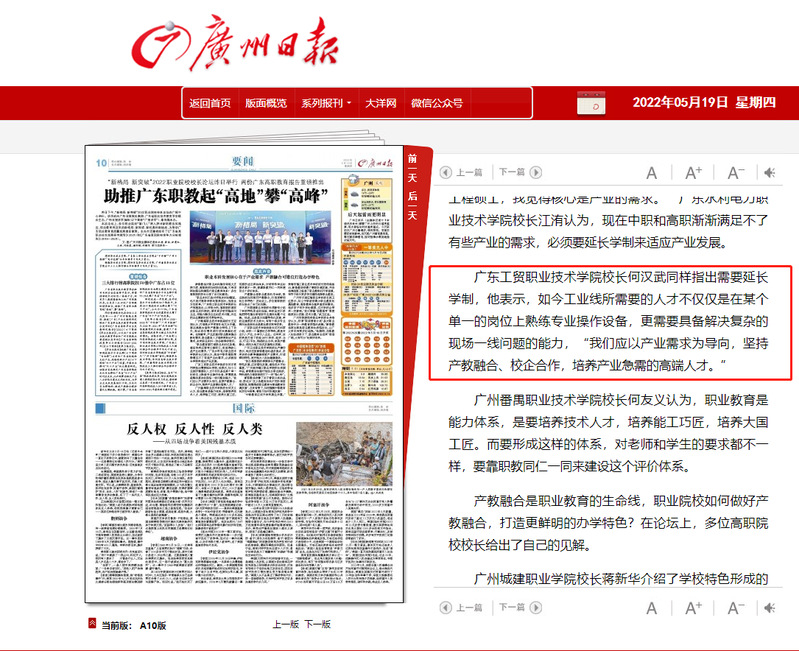 5月19日,“新格局 新突破”2022职业院校校长论坛在广报中心举行。该活动由广州日报报业集团、广东省职业技术教育学会联合主办,广州日报求学指南(以下简称“广报求学”)、粤传媒承办。