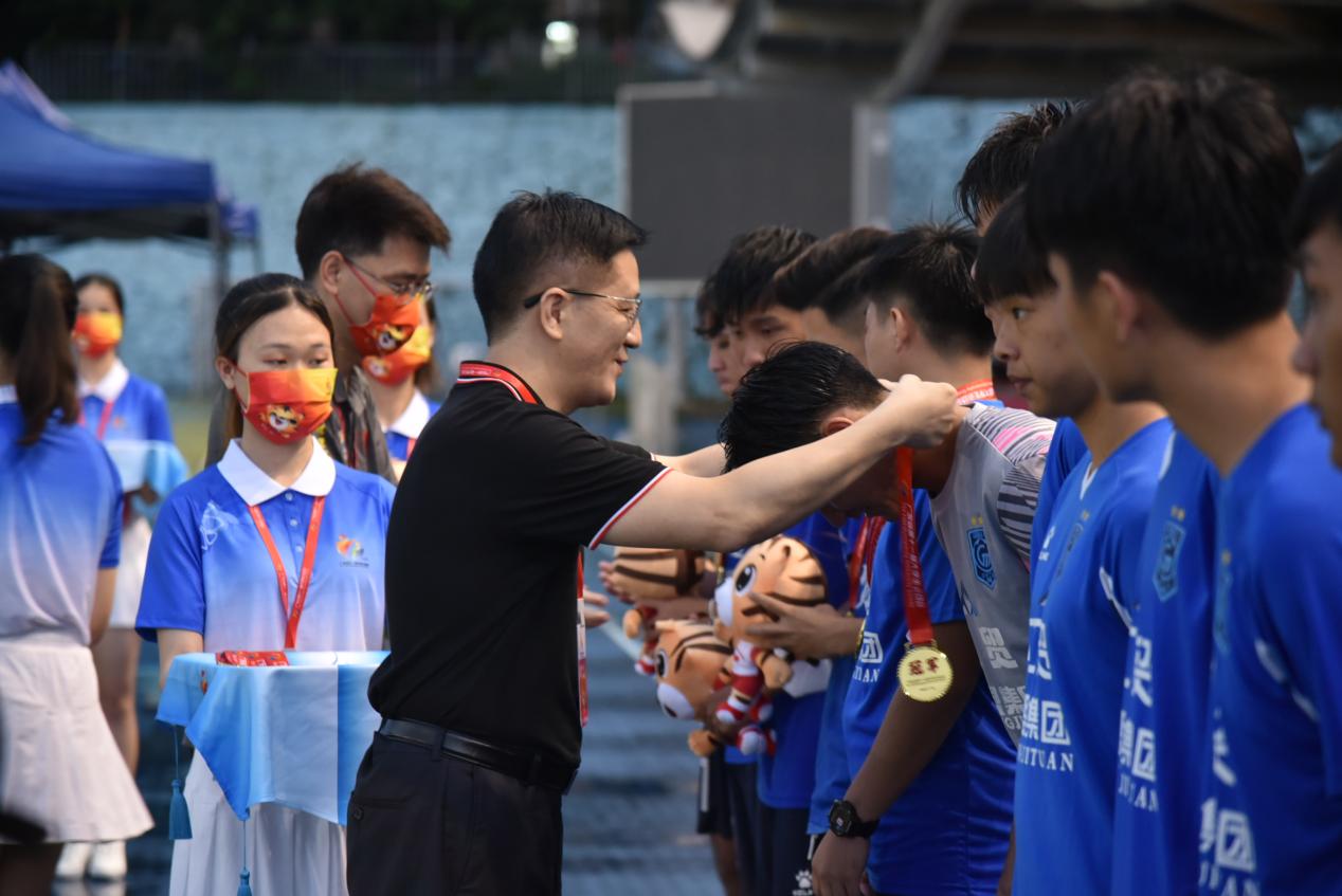 如果梦想有颜色,那一定是工贸蓝!长期以来,学校始终坚持培养学生德智体美劳全面发展,大力营造“阳光、健康、向上”的校园体育新风尚。刘贻新副校长到场为学校足球队加油助威并为队员颁发冠军奖章。工贸足球队将赓续前行,今年8月份代表广东省出征全国大学生足球联赛,立志完成三年2次全国总冠军,并以三年3次全国总冠军为奋斗目标迈出坚定步伐,为校争光!为广东争光!