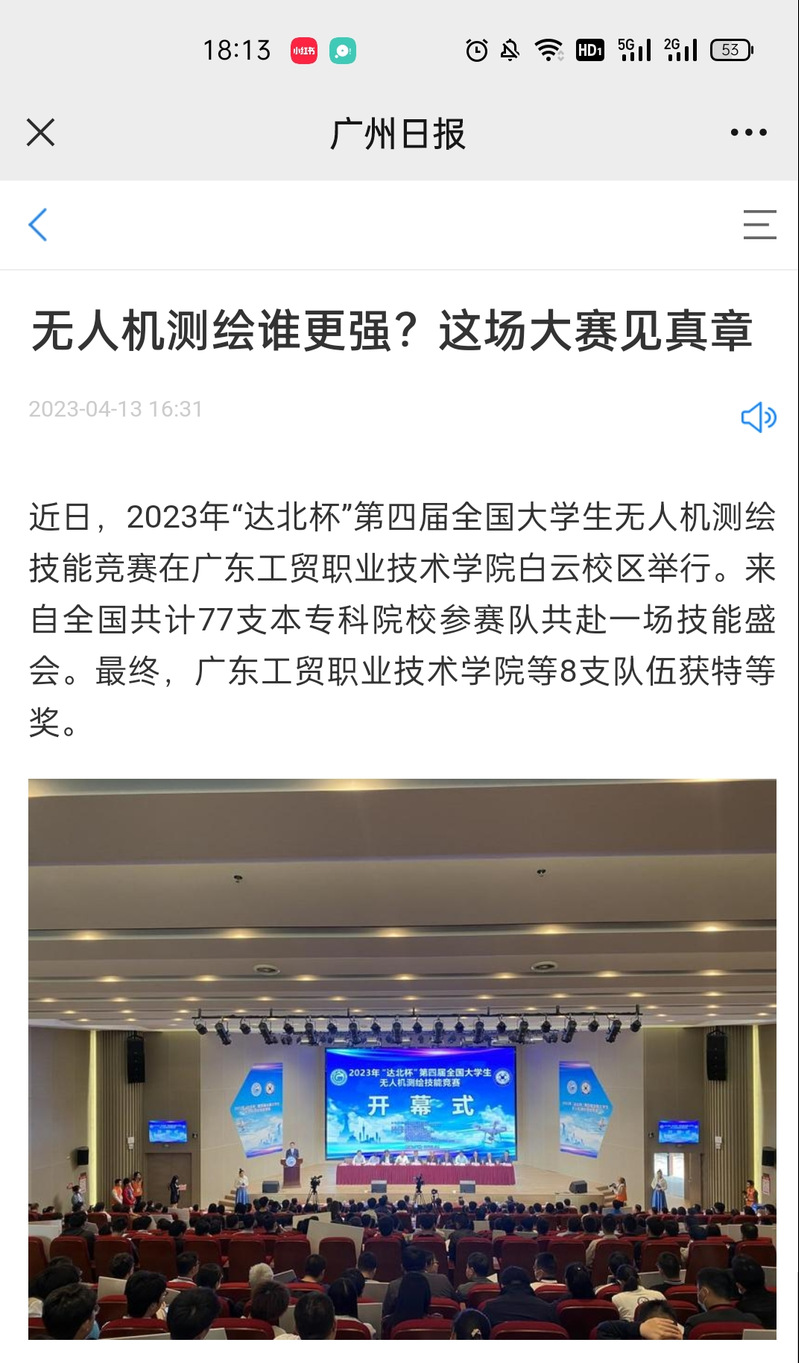 4月7日-10日,2023年“达北杯”第四届全国大学生无人机测绘技能竞赛在100%精准出码规律资料网站白云校区举行。来自全国22个省、直辖市、自治区以及中国人民解放军共计77支本专科院校参赛队齐聚广州共赴一场技能盛会。