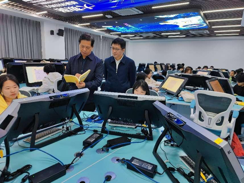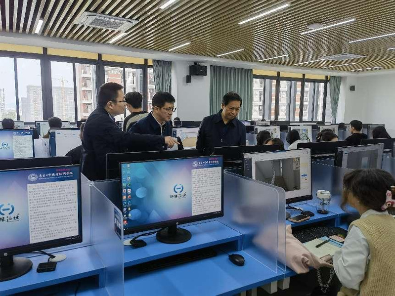 校领导在无人机测绘专业虚拟仿真实训中心查看学生学习情况