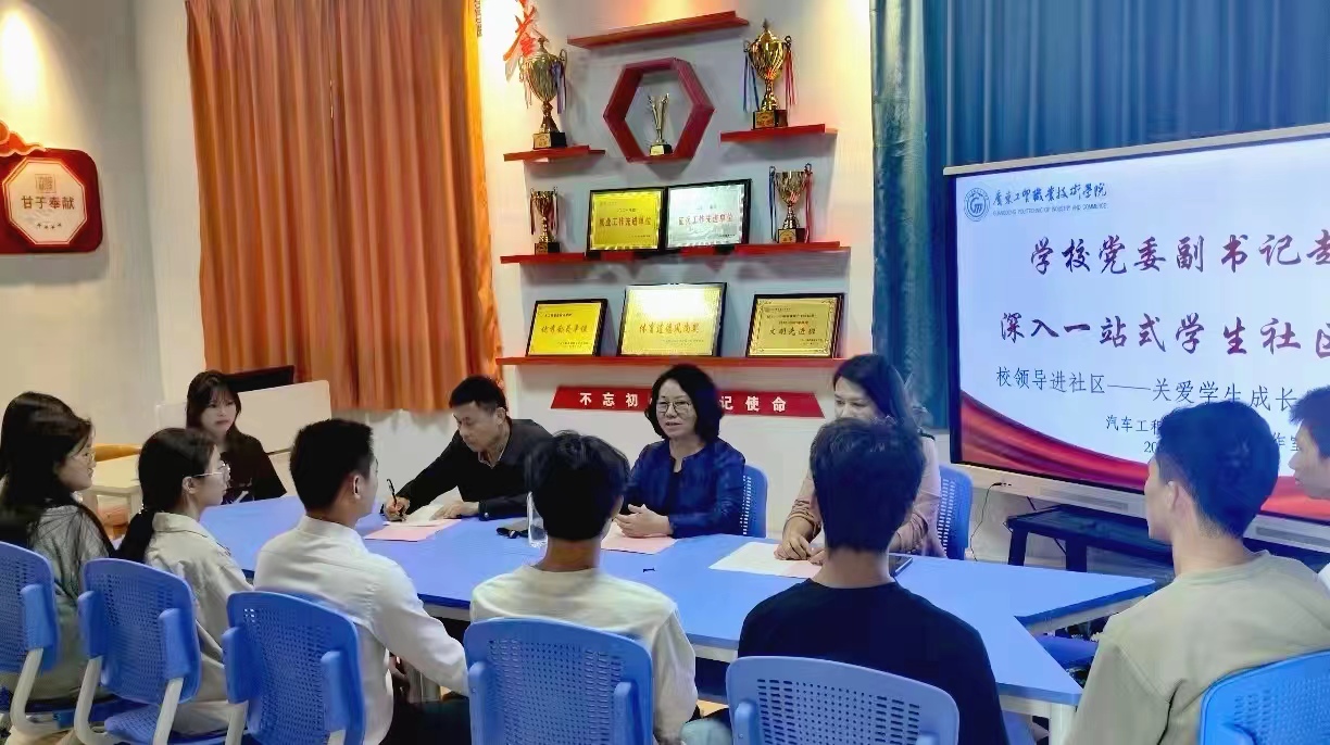 为推进学校“一站式”学生社区综合管理模式建设走深走实,践行“以学生为中心”的教育理念,充分发挥各支队伍的作用,建立健全的多部门联动机制,促使校院领导力量下沉学生社区,汽车工程学院于2023年11月25日在白云校区16栋1楼班主任工作室开展了关爱学生成长发展座谈会。学校党委副书记赵红、汽车工程学院党总支书记彭卫东、党总支副书记欧敏出席本次座谈会。座谈会由欧敏主持。