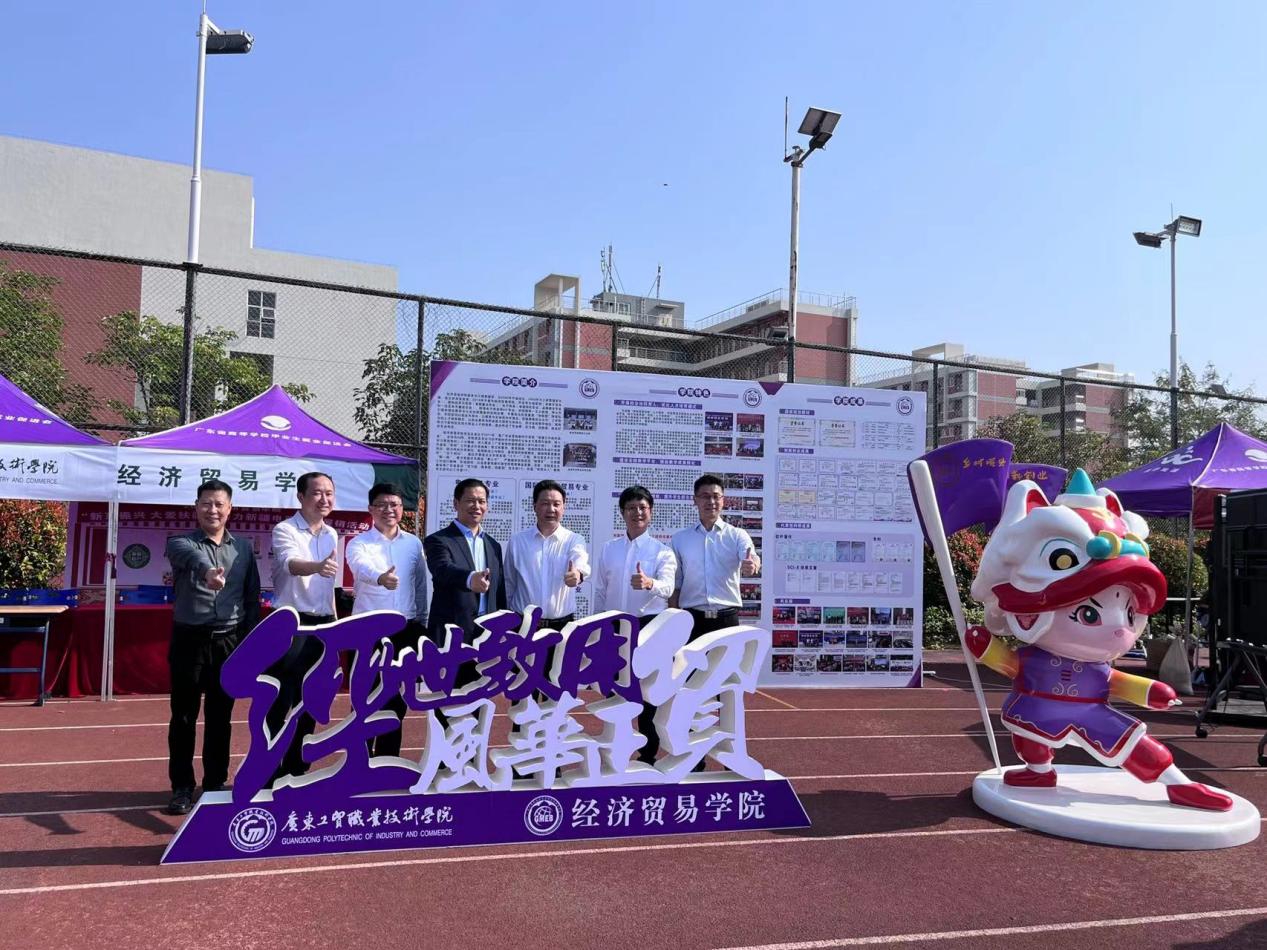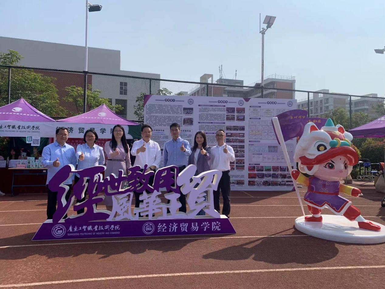 学校领导在经贸学院展区指导工作并合影