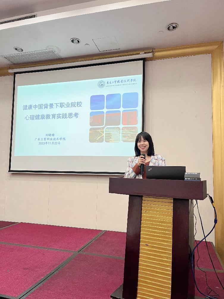 本次年会以“创新推进我省高校大学生心康工作的高质量发展”为主题,首先对22年和23年近两年来的广东省高校心理健康教育与咨询工作进行了总结,随后各高校的心理健康教育与咨询工作者进行了学术研讨和工作经验交流。我校刘晓瑜老师受邀在分论坛“大学生心理健康教育课程高质量发展”第一组进行分享,周薰妮老师受邀在分论坛“大学生心理咨询特色技术高质量发展及研究”第二组进行分享。