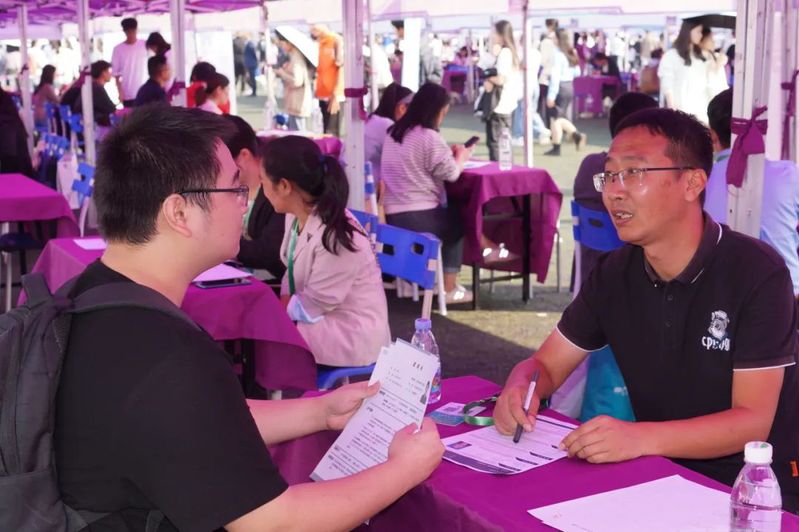 在招聘会现场,毕业生们手持自己精心准备的简历,穿梭于人流之中,积极与招聘人员主动交流,同时也向他们展示自己的所学及所得,为自己的未来奋斗着。
