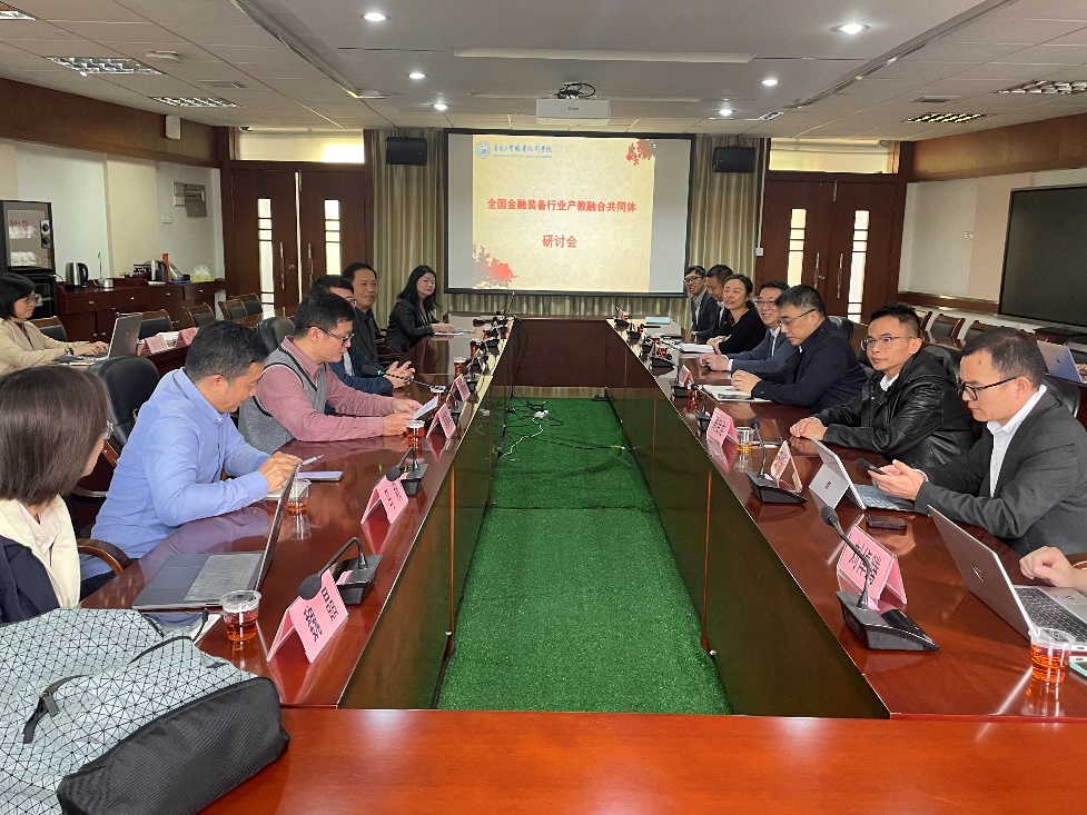 为深度对接地方支柱产业,创新校企融合,协同育人的办学模式,加快推进全国金融装备行业产教融合共同体项目,12月2日下午,由我校组织,中南财经政法大学、佛山职业技术学院、广电运通集团股份有限公司、银联商务股份有限公司、深圳市好易信息技术有限公司的代表在学校西区中心会议室召开交流研讨会。会议由工商管理学院院长邹德军主持,学校党委书记何汉武、党委委员、副校长徐勇军、对外交流合作处处长黎明虹、中南财经政法大学科研部部长张金林、佛山职业技术学院经济管理学院副院长周启运、广电运通集团股份有限公司智能金融研究院副院长丁扬、银联商务股份有限公司惠州分公司副总经理骆晶、深圳市好易信息技术有限公司总经理杨梅等一行,以及我校财税服务系科研团队成员参加了此次会议。