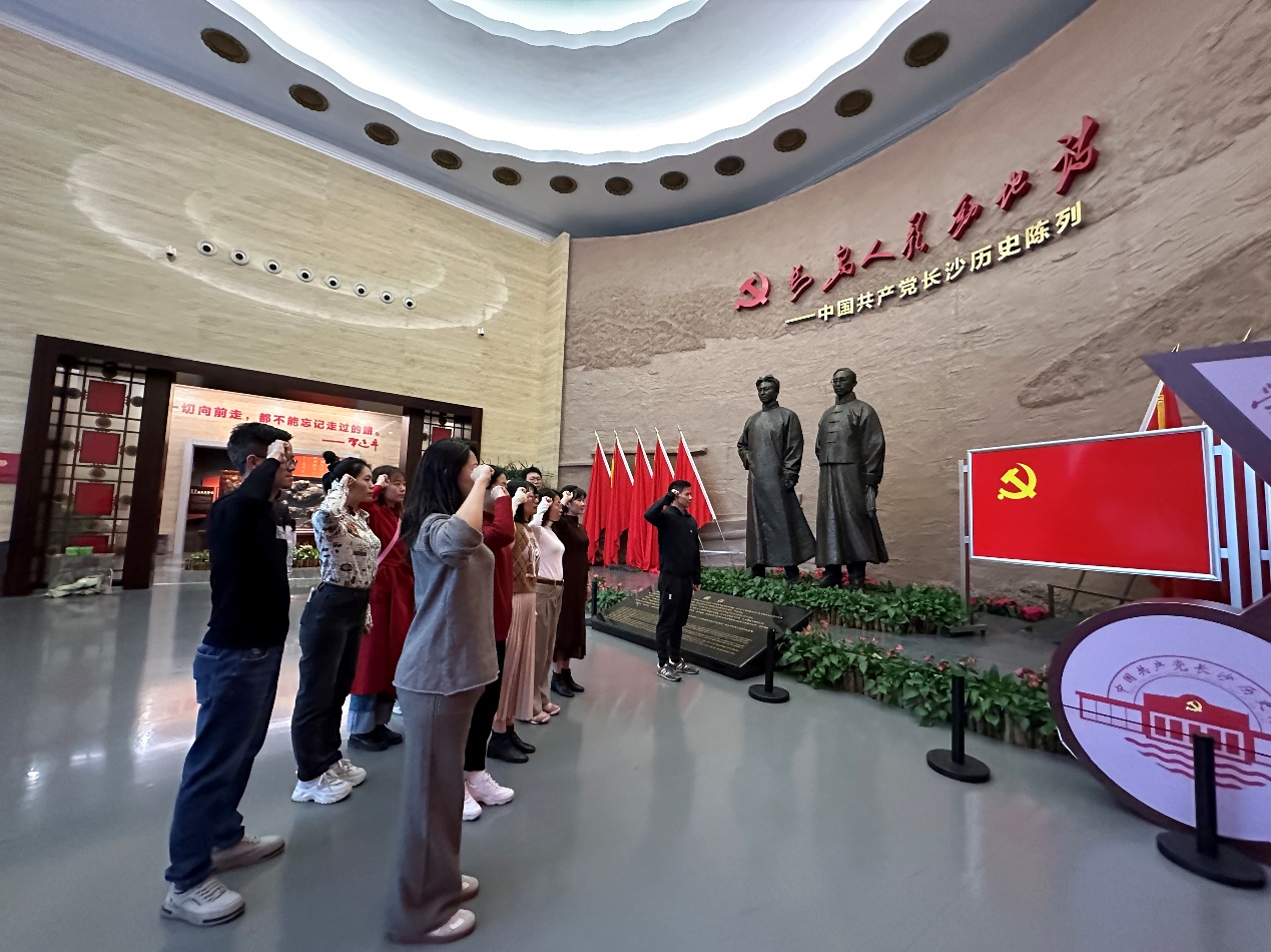 长沙党史馆是长沙市唯一的专题党史陈列馆,全面展示了长沙地区的党史党建工作。在这里,毛泽东领导了中共湘区委员会开展的湘区工人运动,农民运动和学生运动,使湘区成为当时中国革命运动最活跃的地区之一。在毛泽东、何叔衡从长沙赴上海参加党的一大的雕塑前,罗春科组织参加活动全体成员进行了党员宣誓。