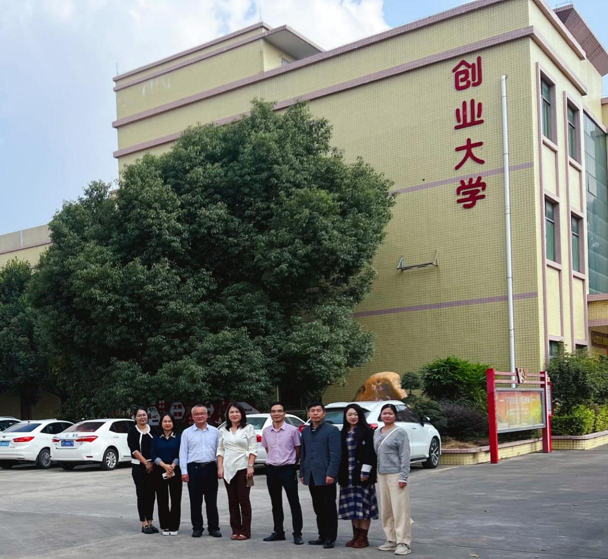 校企双方在箭冠汽配集团创业大学前合影