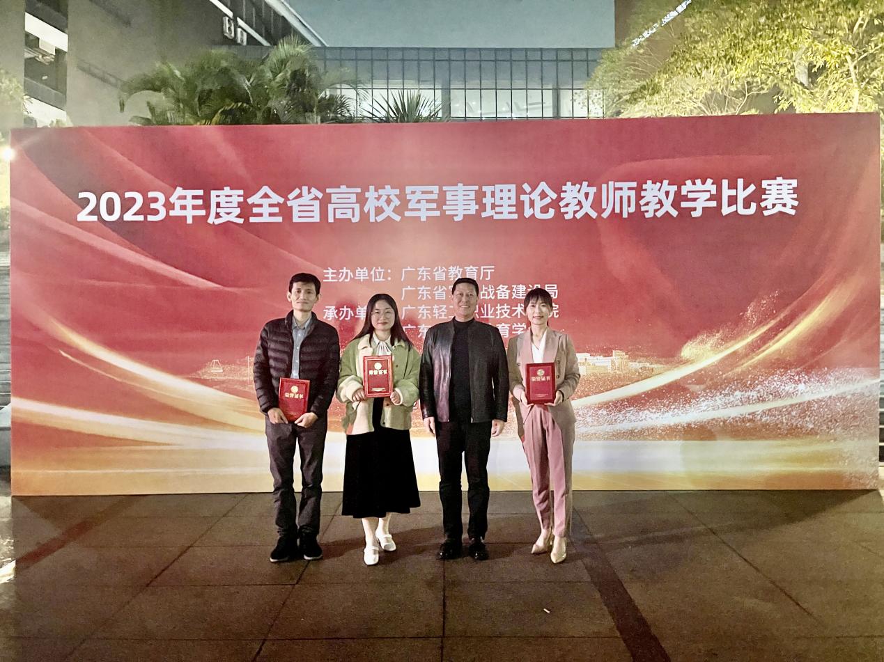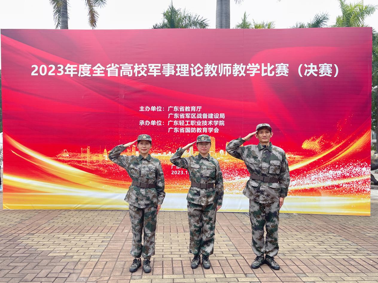 2023年12月16-18日,由广东省教育厅、广东省军区战备建设局主办,广东轻工职业技术学院、广东省国防教育学会承办的2023年度全省高校军事理论教师教学比赛(决赛)在广东轻工职业学院南海校区举行。我校3名老师从全省进入复赛的158个参赛选手中脱颖而出进入决赛,经过军事理论授课、模拟射击、单个军人队列动作等环节的比拼,应用外语学院许瑞如老师获得三等奖、计算机与工程学院苏建荣老师和机电工程学院邵盼盼老师获得优秀奖。