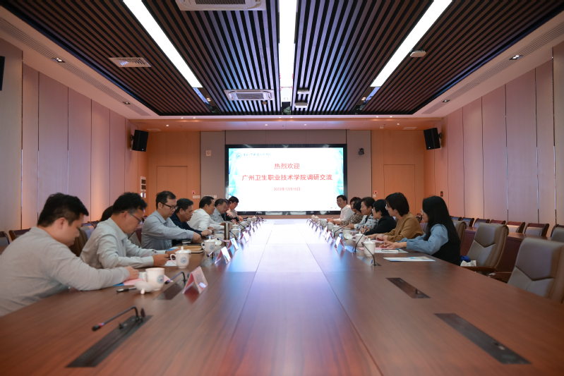 12月15日下午,广州卫生职业技术学院党委书记余莎、基础医学院负责人潘丽、办公室副主任卢广巨、信息技术中心主任吴力挽等一行8人到我校开展调研交流活动。我校党委书记何汉武、副校长唐毓秋、党委办公室主任黄雄志、科研处处长何军拥、信息中心主任王斌、人事处副处长李文菁、学生处副处长郭朝明等接待来访并出席了座谈会。