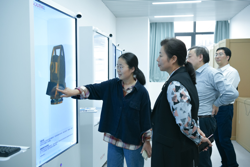 首先,信息中心主任王斌陪同余莎书记一行参观了测绘地理信息技术校企协同就业创业创新示范实践基地、工信部中小企业发展促进中心党建与创新文化长廊、测绘地理信息虚拟仿真实训基地等,与实训基地的师生亲切交流,并体验了Z-space桌面全息交互一体机。测绘学院相关负责老师详细介绍了虚拟仿真基地的教学应用情况。参观过程中,余莎书记对测绘学院的高质量发展和学生的实践成果给予了高度评价。