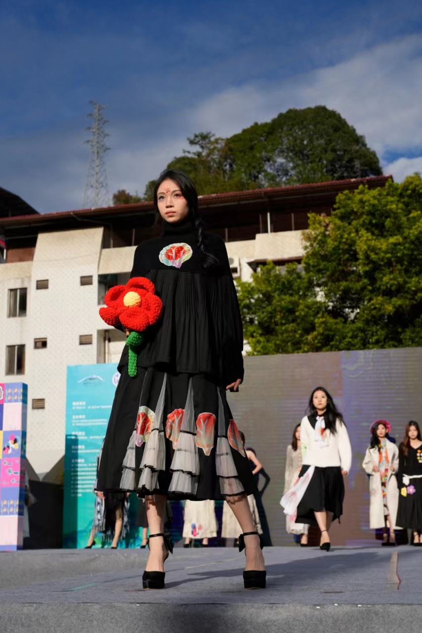 服装秀以“把农民画绘到身上,把南昆山披到身上”的概念,结合惠州南昆山的自然风光,龙门农民画的热情活泼,大胆创新地融合了缤纷色彩与自然风光气息,以活泼明亮、优雅独特的设计风格,展现不一样的龙门农民画。学校指导老师王浩、吴怀生、江曙光等30多名师生共同参与了本次“愉悦龙门 和美南昆”开幕式的服装秀,亲身体验到了龙门农民画的美丽与800多人齐登山的热闹景象,感受到了南昆山的优美风景、清新的空气,每个人的脸上都洋溢着幸福的喜悦。开幕式后,艺术与教育学院教师、礼仪队学生前往南昆山标志景点进行农民画服装写真拍摄。