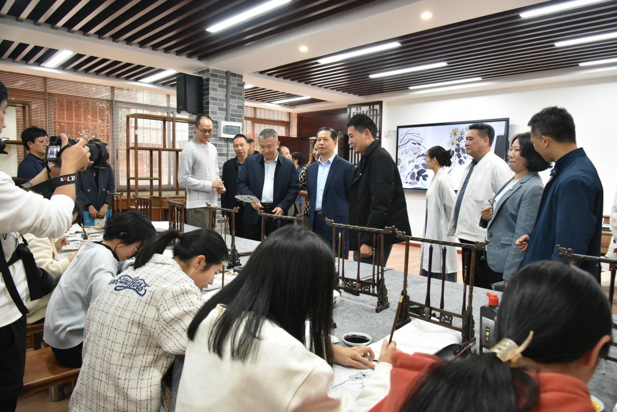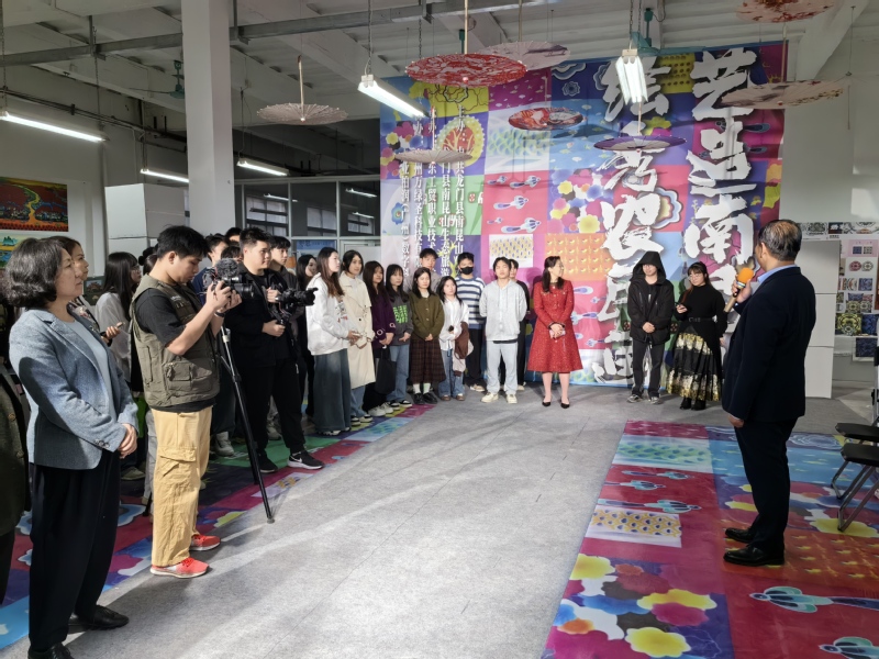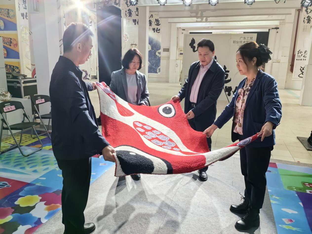 何汉武指出,学校深入学习贯彻习近平文化思想、贯彻落实党的二十大精神,一直以来高度重视文化传承教育工作,持续开展“非遗文化体验”“非遗技艺进校园”系列活动。校园是非物质文化遗产保护与传承的重要阵地,艺术教育是培养学生综合素质的有效途径。他指出,本次非遗传习中心和广东工贸—石围塘社区非遗研习学院的同步揭牌,聘请非遗传承人进校同培共育,将进一步推动非遗项目的社区传播,为非遗项目的传承与发展贡献更多的智慧和力量。同时,学校积极推动“双百行动”落地落实,充分发挥艺术与教育学院文创产品设计的特色优势,紧密结合南昆山景区旅游和文化产业,开启“农民画+”模式,设计制作农民画文创产品,真正地让非遗项目“活起来”“走起来”“亮起来”。