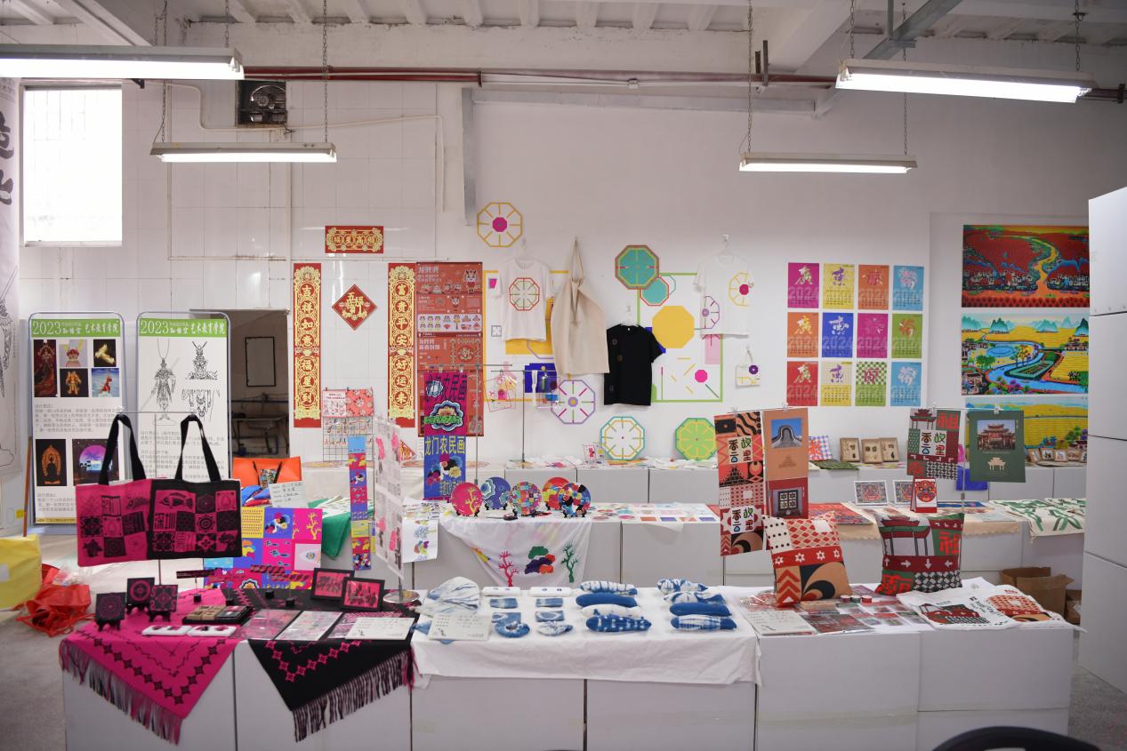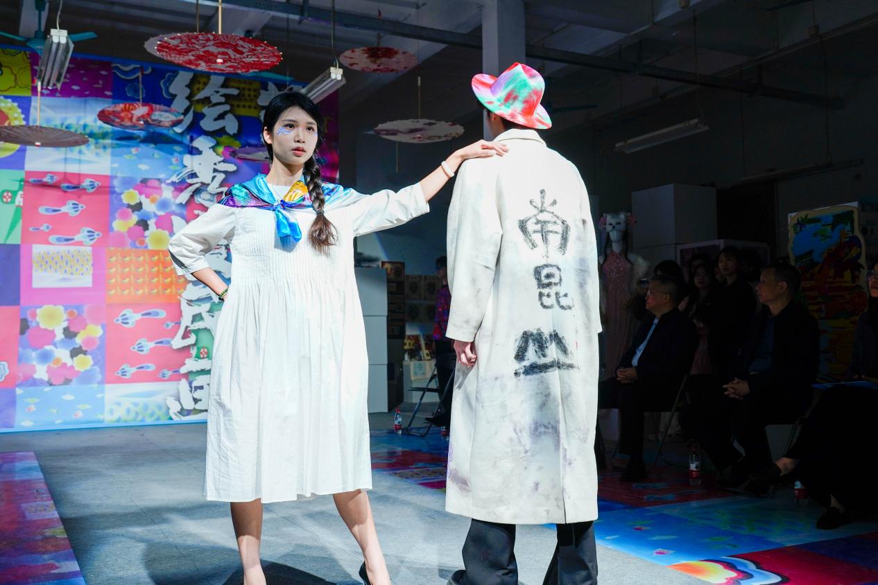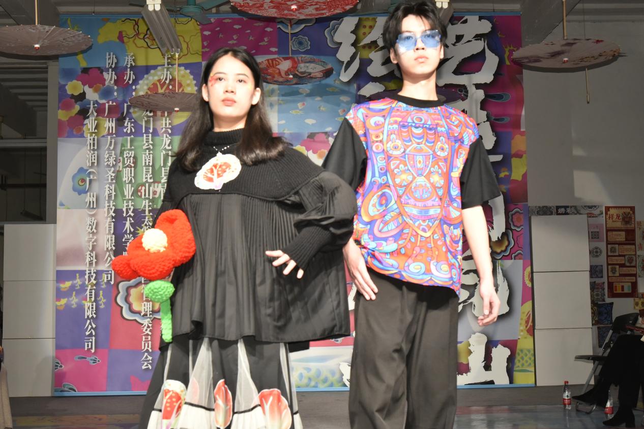 现场设置了2024届毕业生毕业设计展,包括“惠州龙门农民画文创设计”、“非遗文创设计”、“设计助力乡村振兴”等主题,本次展览特设“绣绘农民画 艺造南昆山”服装秀环节,聚焦“双百行动”主要任务,师生团队以“把农民画绘到身上,把南昆山风景披到身上”为概念,结合惠州南昆山的自然风光,龙门农民画的热情活泼,创造出活泼明亮、优雅独特的设计风格,为大家带来了一场精彩难忘的农民画服装大秀,使现场观众沉浸在时尚与乡土碰撞出的时尚潮流中,尽显传统文化之美,非遗文化之魅!