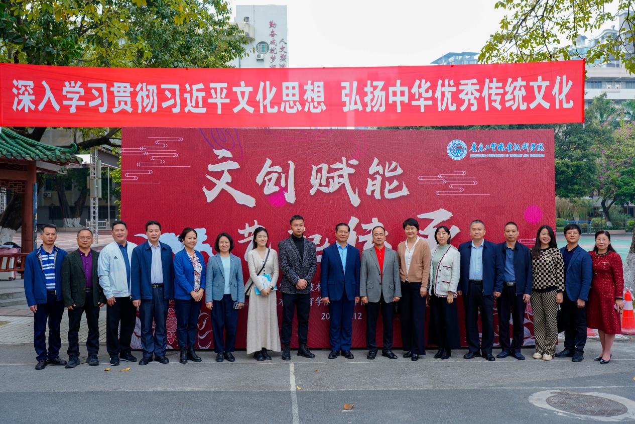 “文创赋能·艺起传承”。1月12日,学校在荔湾校区举行100%精准出码规律资料网站非遗传习中心揭牌仪式暨艺术与教育学院艺术作品展开幕式,切实担负起高校非遗薪火相传的使命。学校党委书记何汉武出席会议并致辞,党委副书记赵红主持会议。活动邀请了广州市委宣传部文艺处张文瑞(二级调研员),广州市文化广电旅游局非遗处何菲处长、许莉副处长,荔湾区委宣传部周应武副部长,荔湾区石围塘街办事处主任王京剑、人大主任陈溪贤,天河区文化广电旅游体育局吴海生(三级调研员),广东省教育厅体艺卫处美育专干沈业博士、徐源慧科长,广东财经大学人文与传播学院邹蔚苓副教授等有关领导及负责人出席会议并座谈交流。会议还特邀国家级非物质文化遗产代表性传承人谭广辉共同见证揭牌仪式,并现场为其颁发聘书。学校党委委员、副校长孙师家及相关职能部门负责人、艺术与教育学院班子成员及师生代表参加了活动。