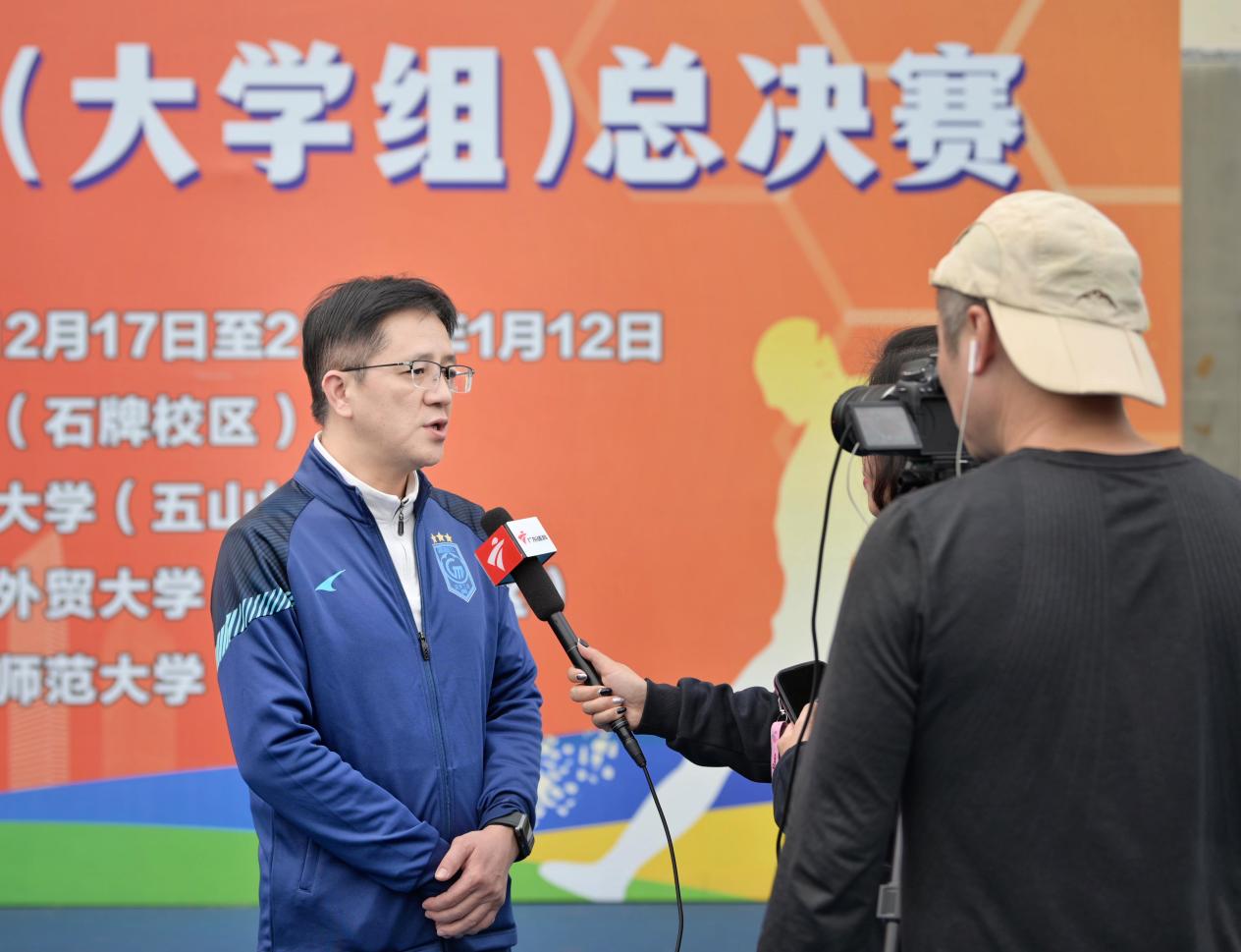 赛后我校副校长刘贻新、主教练李耀辉老师分别接受广东广播电视台体育频道采访。