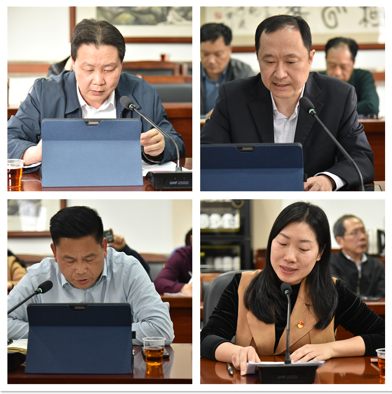 党委委员,副校长孙师家、党委委员,纪委书记陈斌、党委委员,组织部部长甘乃添、工商学院党总支书记周清莲对标对表工作实际,交流了学校有关工作成效、存在的问题不足和下一步思路举措,围绕更高水平安全校园建设、党风廉政建设、依法治校、基层党组织治理等方面作了交流发言。