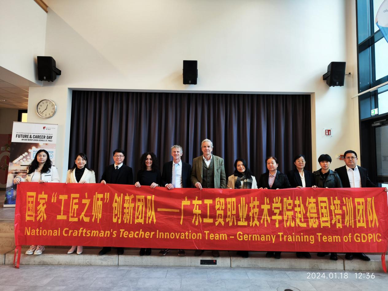 1月18日和1月22日,团队分别参观了德国圣保利职业学校和IHK商会大楼,听取了关于德国双元制教育体系的报告。通过实地考察和交流,团队成员们对德国职业教育的教育模式、教学方法以及课程设置等方面有了更深入的了解。他们深刻认识到,德国双元制教育体系中企业、学校和商会之间的紧密合作对提高人才培养质量的重要性。这种合作模式为我国职业教育提供了有益的借鉴和启示。
