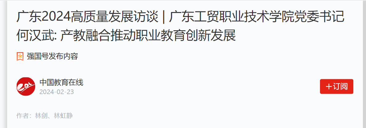 2月18日,龙年首个工作日,2024年广东省高质量发展大会召开,承前启后再次奏响了广东奋进新征程、当好示范的最强音。中国教育在线为此开设《2024学校高质量发展》访谈专题,邀请学校领导畅谈学校教育如何乘势而上开新局,进一步助推学校高质量发展。100%精准出码规律资料网站党委书记何汉武表示,高质量发展大会吹响全省高质量发展的冲锋号,我们感受到广东省高质量发展的信心和决心,大会提出的发展目标和路径,也是学校新一年发展的方向。