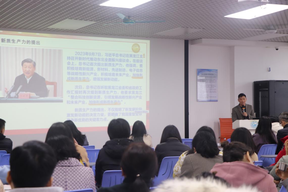 彭枚芳以“立足新起点,谋划新篇章,推动学院高质量发展”为主题,对上学期教学素质评定工作进行总结。第一,规范教学管理,实施精准教学,科学有效地提高教育教学质量。第二,大力推动基础教育,全面落实新时代岗位建设和学校工作的准备要求,持续落实立德树人为核心的育人理念,深化教学改革,提高教育教学水平,提升学院治理效率,共同发展开创新局面。第三,以学生为本,严格教学秩序,坚持科研育人机制,探索科教融汇的新路径,充分发挥高等教育龙头作用,继续推进实训基地的建设,进一步深化产教融合。彭枚芳指出学院积极支持教师成长,鼓励教师不断提升自身的专业素养和教学能力,希望大家在新学期里有新的收获。