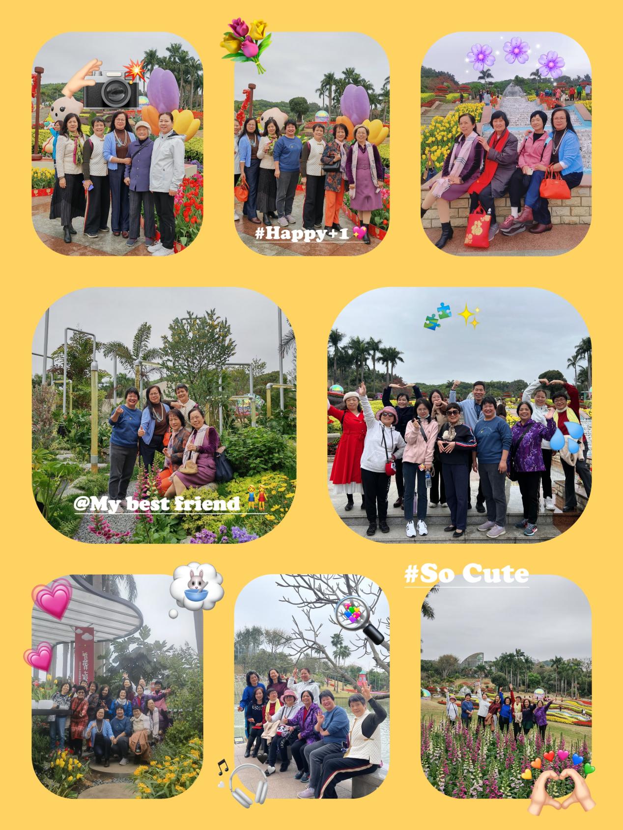 活动当天,万里无云,凉风习习,一扫广州两天的潮湿回南天。离退休女教职工兴致勃勃地来到云台花园,便被五彩斑斓的花艺作品所包围,一朵朵鲜花绽放出艳丽的姿态,仿佛在为离退休女教职工献上最诚挚的祝福。离退休女教职工三五成群、或两两相伴在花海中畅游,欢声笑语、其乐融融,欣赏美丽的花艺作品,拍照留念,尽情享受美好春光,畅谈幸福的退休生活。
