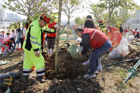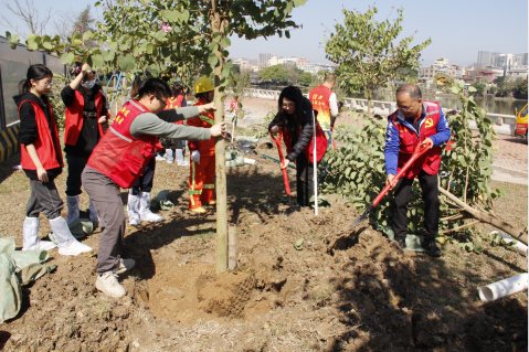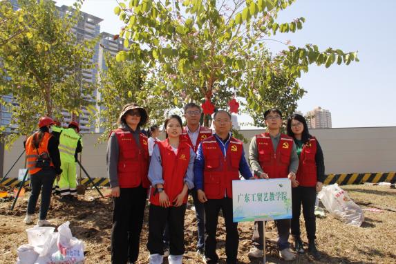 3月12日是我国的第46个植树节。为深入贯彻落实党的二十大精神和习近平生态文明思想,牢固树立和践行绿水青山就是金山银山的发展理念,艺术与教育学院联合荔湾区石围塘街林长办在植树节当天共同开展了以“凝心聚‘绿’ 共建绿美广东”为主题的义务植树活动。在学院党总支临时负责人叶宜同的带领下,学院团委、学生党支部组织党员和团员代表一同到珠江岸边参与植绿护绿爱绿行动,共建美丽广州。
