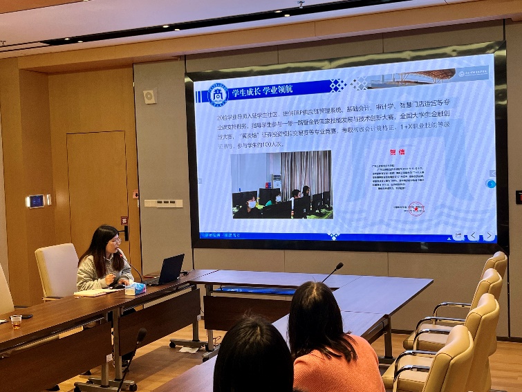 辅导员舒燕汇报工商管理学院“一站式”学生社区工作情况