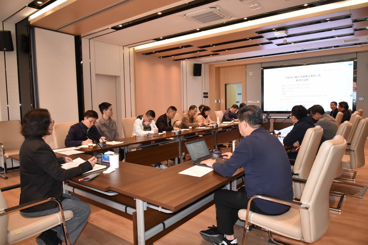 为进一步贯彻落实《广东省人民政府关于印发广东省推动基础教育高质量发展行动方案的通知》(粤府〔2021〕55号)、《广东省教育厅关于做好全口径全方位融入式帮扶粤东粤西粤北地区基础教育高质量发展工作的通知》(粤教师函〔2021〕27号)等文件精神,推动落实2024年工作任务,3月20日上午,学校副校长赵红在白云校区博学楼第三会议室组织召开对口帮扶廉江基础教育工作推进会,党委办公室、学校办公室、党委组织统战部、教务处、科研处、信息中心、团委、图书馆、继续教育与培训学院、艺术与教育学院等部门人员参加了会议。会议由学校办公室主任吴浩主持。