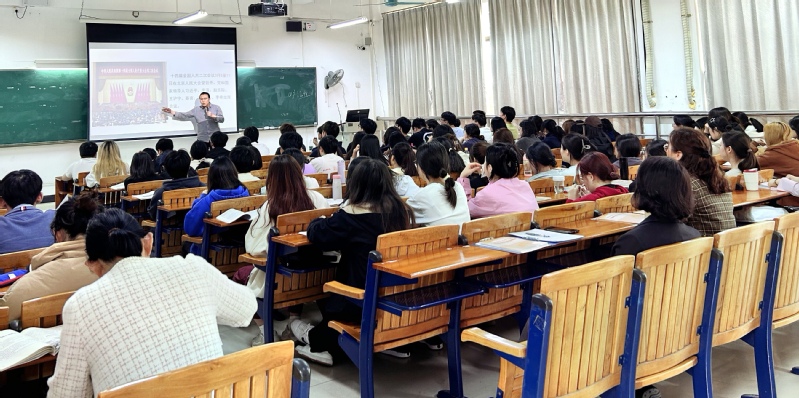 为深入贯彻落实习近平总书记关于高校思政课建设的重要指示批示精神,强化学校党政领导班子带头推动思政课建设的主体责任,切实提高思政课教学质量,3月20日下午,马克思主义学院在白云校区明德楼2-203课室举行思政课公开课听课评课活动。当天由胡建强老师主讲《形势与政策》课2024年全国两会精神学习专题。学校副校长赵红、质评中心副主任钟润萍督导和马克思主义学院当天下午无课的教师参加听课评课活动。