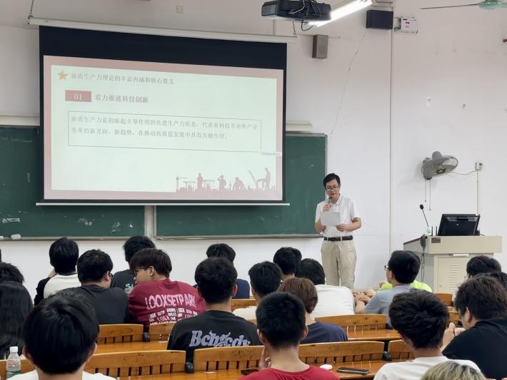 本次课程的主题是:新质生产力的内涵与特征。首先,邹德军以新质生产力理论的丰富内涵和核心要义进行讲解,分为“着力推进科技创新”、“着力推进产业创新”、“着力推进体制创新”、“着力发挥人才作用”五点展开,提出要进一步增强推动新质生产力发展的自觉性和主动性,坚持从实际出发,立足科技、产业、体制创新和发展方式创新,更好发挥人才作用,扎实推动新质生产力发展。接着,邹德军通过新质生产力本质及特征说明了新质生产力理论是对我国经济建设规律的深刻总结,是一项重大理论创新,具有重要理论和现实意义。邹德军提出作为新时代大学生要深刻领会新质生产力理论的丰富内涵和核心要义,充分认识发展新质生产力的重要意义,紧密结合实际,坚持问题导向和系统观念,以新质生产力推动高质量发展。
