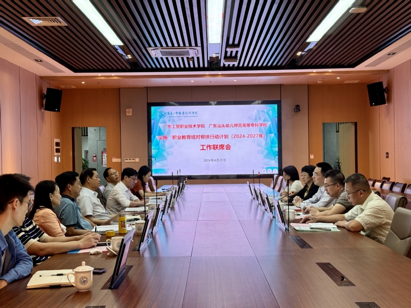 为深入贯彻全省职业教育大会精神,全面落实《关于推动现代职业教育高质量发展的若干措施》文件要求,根据《广东省教育厅关于实施职业教育结对帮扶行动计划(2024-2027年)的通知》安排部署,我校与广东汕头幼儿师范高等专科学校(以下简称汕头幼专)作为结对单位。2024年4月19日上午,为切实有效开展职业教育结对帮扶行动任务,汕头幼专党委书记、校长程拱胜一行5人到访我校白云校区,并共同组织召开了首次工作联席会。我校党委书记何汉武,党委办公室、学校办公室、党委组织统战部、教务处、人事处等部门有关人员参加了会议,会议由学校党委委员、副校长徐勇军主持。