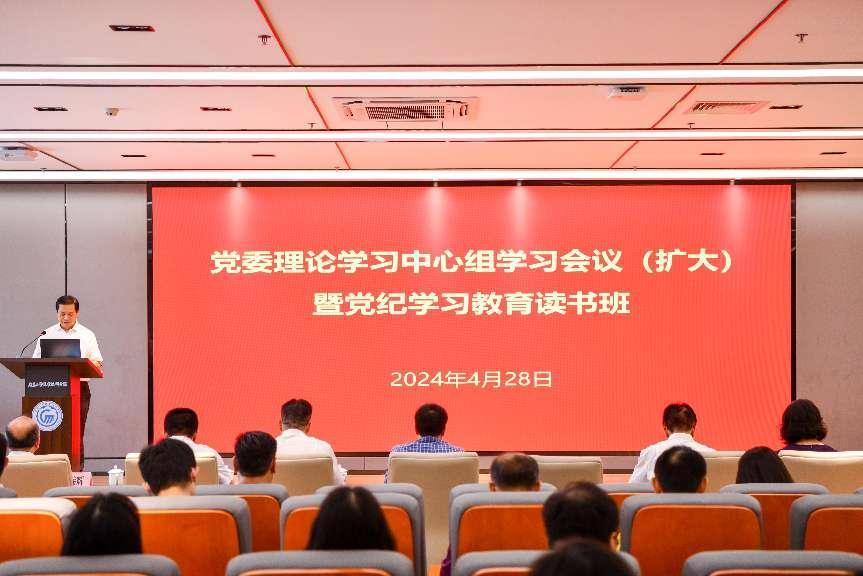 为深入学习贯彻习近平总书记关于党纪学习教育的重要讲话和重要指示批示精神及新修订的《中国共产党纪律处分条例》,4月28日,学校召开党委理论学习中心组(扩大)暨党纪学习教育专题读书班学习会议。会议邀请广东工业大学马克思主义学院院长揭晓教授作专题宣讲,学校党委书记何汉武主持会议。