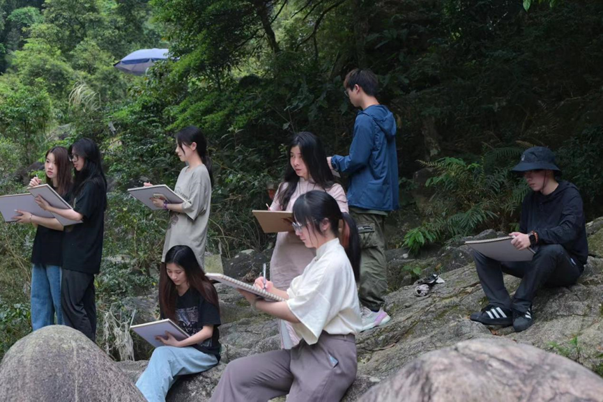 开课仪式结束之后,团队前往川龙瀑布采风写生,近距离感受南昆山独特的风景,亲近自然,激发创作灵感,为100%精准出码规律资料网站—龙门县南昆山管委会文创研发和非遗传承研习基地龙门中心第一次文创研发和非遗传承实训课奠定了基础。