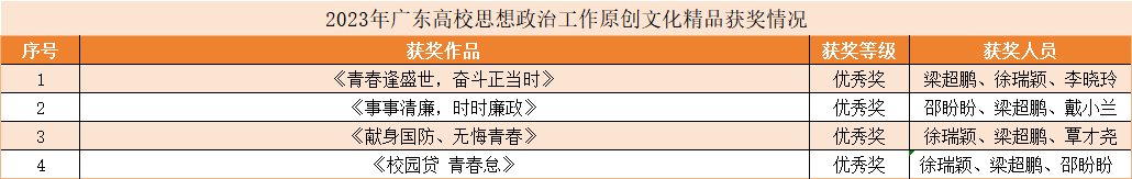 2023年广东高校思想政治工作原创文化精品获奖情况