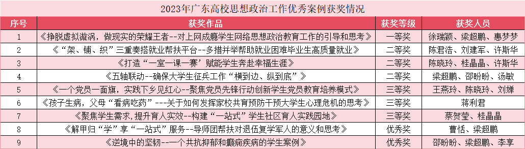 2023年广东高校思想政治工作优秀案例获奖情况