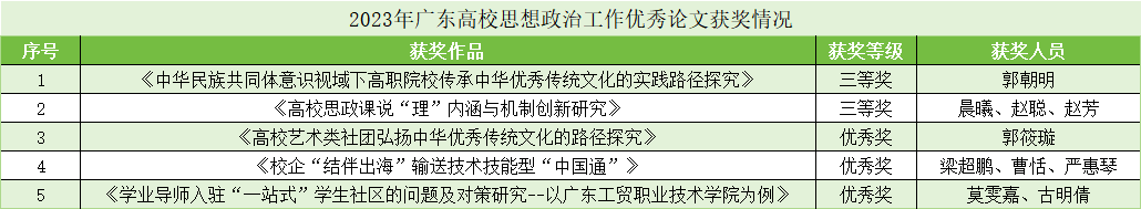 2023年广东高校思想政治工作优秀论文获奖情况