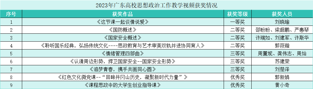 2023年广东高校思想政治工作教学视频获奖情况