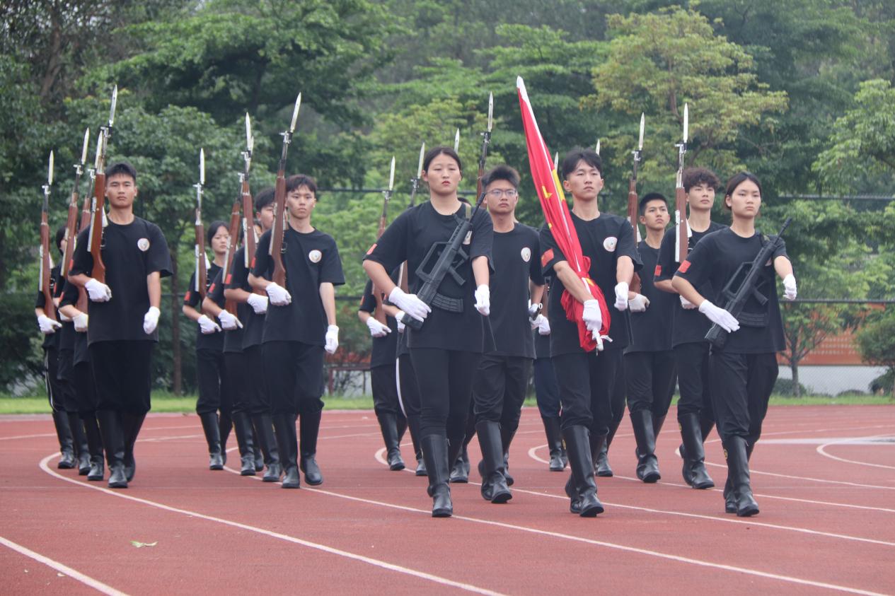 仪式伊始,国旗护卫队气宇轩昂,他们擎着红旗,踏着整齐划一、铿锵有力的步伐,向升旗台走去,嘹亮的国歌声响起,师生们整齐划一地行注目礼,目光炯炯、全神贯注。伴随着雄壮的《义勇军进行曲》,五星红旗徐徐升起,师生们齐唱国歌,表达对祖国深挚的爱。