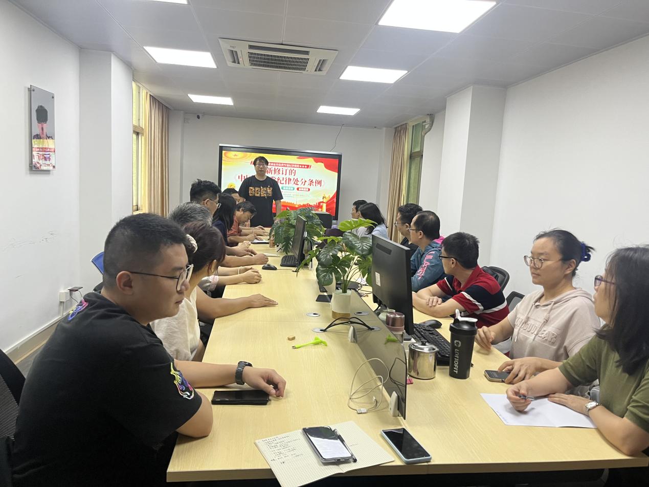 为进一步加强纪律教育、强化纪律意识,营造学纪、知纪、明纪、守纪的浓厚氛围,5月21日下午,计算机与信息工程学院第一党支部组织召开专题学习会议,深入学习《中国共产党纪律处分条例》(以下简称《条例》),支部全体成员参会。