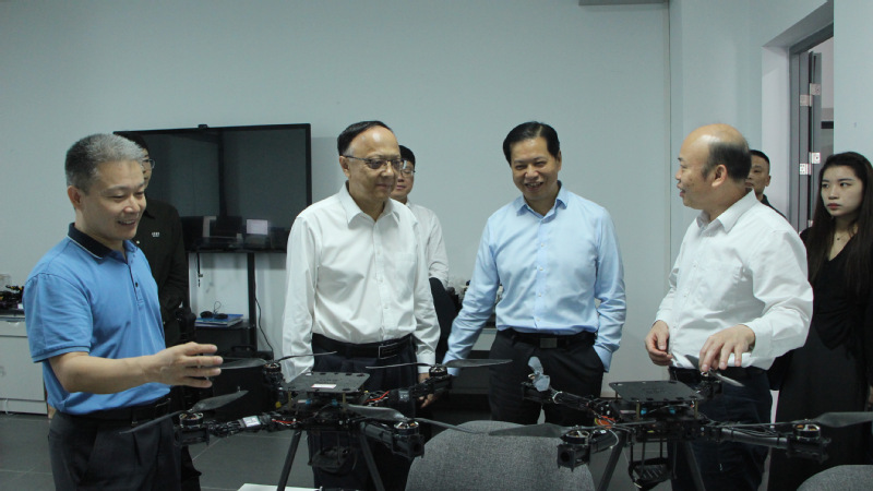 座谈会结束后,我校领导陪同贵宾参观了测绘遥感信息学院的建设状况,由测绘遥感信息学院的党总支书记、院长速云中担任讲解员。先后参观了测绘地理信息技术校企协同就业创业创新示范实践基地、工信部中小企业发展促进中心党建与创新文化长廊、测绘地理信息虚拟仿真实训基地、无人机应用与创新空间、测绘技术虚拟仿真体验中心等场所,并介绍了虚拟仿真基地的教学应用情况。参观过程中,速云中院长分享了“双高计划”专业群建设经验,双方就“双高计划”专业群建设、产业学院建设、人才培养等方面进行了经验交流和深入探讨。