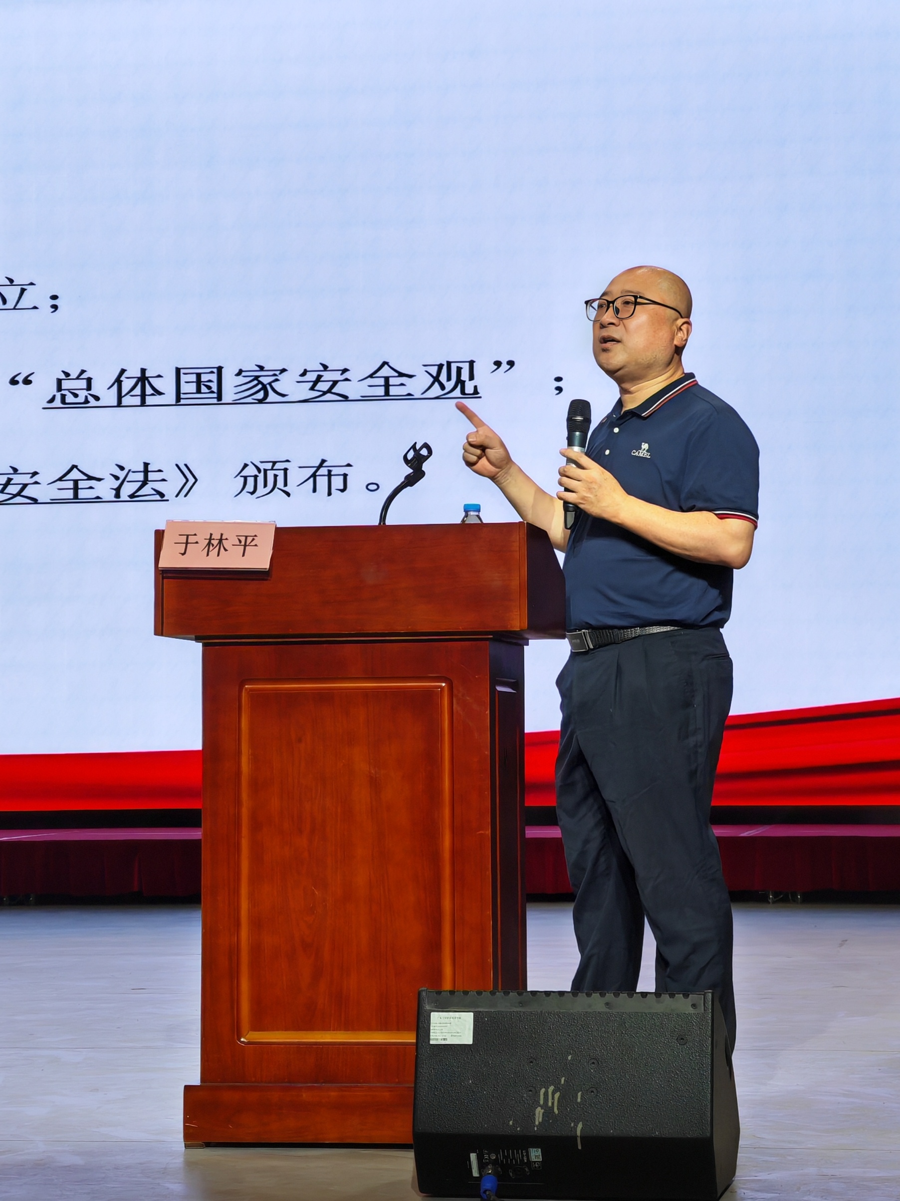 于林平教授以“新时代背景下中国国家安全形势分析”为题,从总体国家安全观出发,系统分析了当前国际形势和国内安全形势,对新时代背景下我国国家安全形势进行了科学研判。他的讲解深入浅出,内容生动详实,赢得了在场师生的热烈反响。同时,于教授对在座的各位同学提出了殷切期望,希望他们能够增强国防意识,坚定理想信念,积极参军报国,为国家的繁荣富强贡献青春力量。