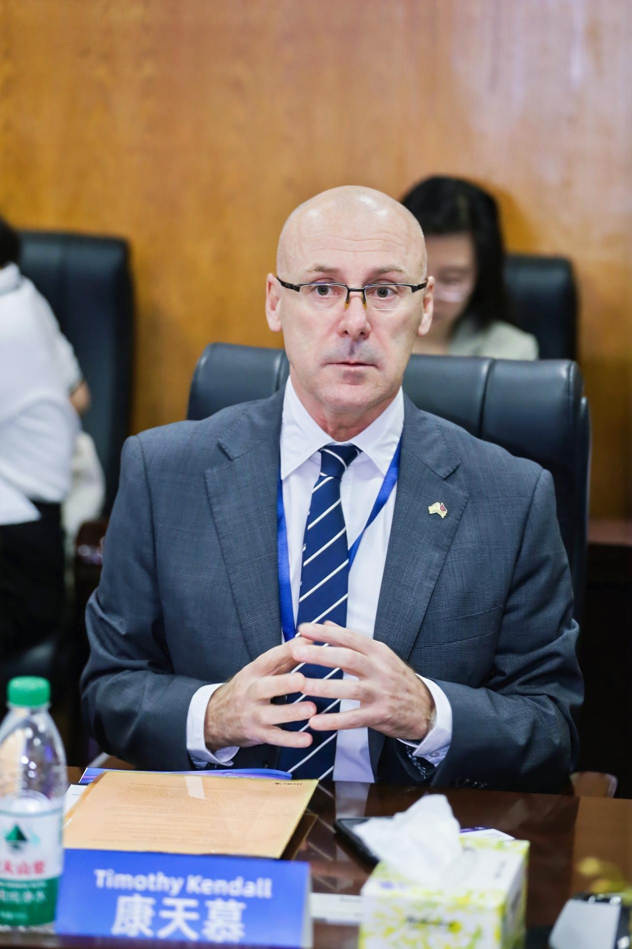 澳大利亚驻广州总领事馆总领事康天慕发表致辞,他高度评价了教育在中澳关系稳健发展中发挥的重要作用,并介绍了昆士兰州的教育投入和发展趋势,表示愿意与广东职教加强合作,共同推动职业教育的发展。